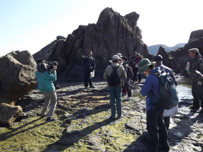 26日27日の両日南ブロックのジオガイド現地研修が行われました。26日は古座川町の滝の拝・一枚岩・虫喰い岩27日は串本町の橋杭岩・潮岬・和深・田子をまわりました。 報告 ひめひじき |