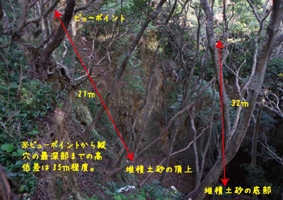 紀伊民報の新春企画の取材で隊長・けいちゃん・ひめひじきの3名が地獄の釜に行きました。 地獄に落ちる寸前で青ざめている3人の写真を撮りましたが、それだけで終わっては能がないので、ひめひじき家に代々伝わる測量装置を使って、釜の深さを測りました。 調査結果は写真の通りです。皆さん、地獄に落ちる前にはチェックしておいて下さい。 報告 ひめひじき |