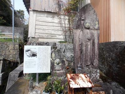 ![]() 今日は天保の国絵図に書かれた佐本〜小節川山越え街道を踏査。古座街道のオーソリティの小板橋さん、佐本の桜井さん、わかミン、イーチャン、狼おじさんが参加。版築の古道も残るいいルートでした。 幹周り6mのシイの巨木の下に祀られている峠のお地蔵様を発見。 お地蔵様の左右に「為両親菩提 天保十二丑秋」足下に「越前産禪明」と刻んでありました。勤行のあと記念撮影。小節川にも道標地蔵2体と庚申像が民家に安置されているのを発見。 報告 狼おじさん |