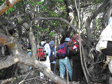 三重県熊野市の「熊野の自然を考える会」「熊野古道語り部友の会」の皆さんが、大辺路刈り開き隊が整備したルートを歩きにやって来ました。刈り開き隊としても万全の受け入れ態勢を整えお迎えしました。学ぶ事の多かった交流ウォークの一部をご紹介します。 |