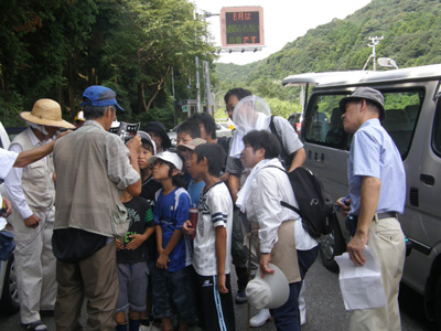 刈り開き隊の保全活動を評価して国土交通省が田原湿地帯の水路沿いに遊歩道を整備してくれました。隊としての活用イベント第2弾として2009年8月22日に自然観察会をひらきました。 |
