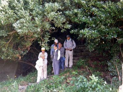 ![]() 明治の公図に記されていたルート復活のための調査に行ってきました。取り付け部分が民家を通るため、迂回路が必要になりそうです。 写真は地権者を訪ねて相談しているところです。 |