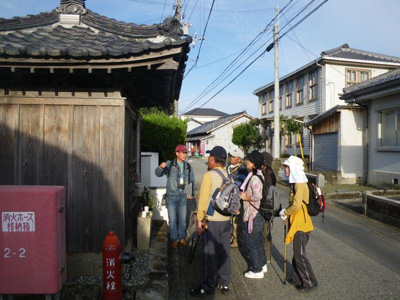 今日は気持ちの良い秋晴れの中、JRタイアップウォーク、22人が参加。狼おじさん、ひめひじきさんが語り部。荻中さんと私がサポート。ひめひじきさんは、例によって「一緒に歩こう」歌唱指導に加え、昼食後のデザートに山採りの「むべ」をふるまうなど、大活躍。写真は原町の小堂で説明する、ひめひじきさん。(文 けいちゃん) 隊員4名参加 |