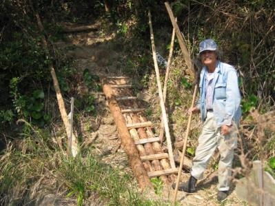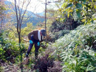 ![]() 久々の大規模な作業を行いました。田子中平見では一部民家の庭を通るルートがあり、通る方も気遣いしていましたが、庭先に新たな道を刈り開き、一部区間は斜面に足場を組み、橋をかけました。 |