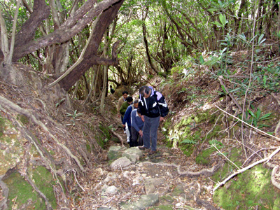 県の文化遺産課長が串本町に残る大辺路の古道を視察。田並の石畳など予想以上の保存状態に驚いて串本の熊野古道を再認識。 |