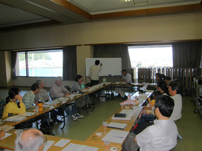 ![]() 2009年度の定期総会を串本町役場古座分庁舎で開催。 出席者が17名に委任状が9通で総会成立。総会議長には神保圭志氏を選任。 全員による隊歌斉唱(一緒に歩こう)のあと、活動報告・決算承認・今年度の活動計画など熱心に話し合われた。 副代表の新谷氏は公務(語り部)のため欠席。 |