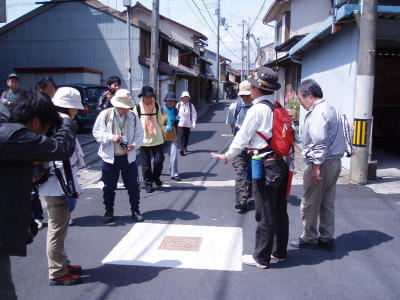 アメリカへの出稼ぎが盛んだった田並地区では煉瓦塀などの家並みに名残がみられます。街並み散策と、サンゴを焼いて石灰を製造していた時の窯跡をたずねるコースです。語り部は文化財おじさんと狼隊長の二人。サポートは萩やんでした。 ウォークの模様は紀伊民報で報道されました。 |