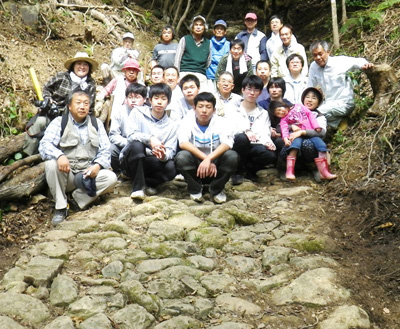 ![]() 和歌山県世界遺産センターの指導のもと、串本高校生の応援も加わり、大辺路でもっとも保存のよい富山平見の石畳道修復作業を行いました。 雨水やイノシシのおかげで崩壊が進みつつあった石段や石畳を、できるだけ原形に近いかたちに戻し、これ以上の崩壊を防ぐため雨水の水路を整備した結果、素晴らしいたたずまいの道が蘇りました。 積もった腐葉土を除けると新たな石畳が現れたり、興奮の連続の一日でした。(けいちゃん) |