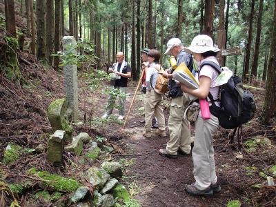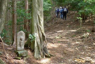 ![]() 小板橋淳さんの「熊野中道ー古座街道・四つの峠越えと石佛を巡る」出版記念に、関係者に呼びかけて著者の小板橋さんのガイドによる栃又峠越えトレッキングを行いました。田辺〜尾鷲までの17人が参加。佐田庄から久留美谷へは初めての道でしたが立派な掘割りのある古道が残っていました。最後に一雨(いちぶり)の道標地蔵をバックに記念写真。 報告 狼おじさん |
