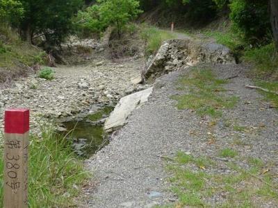 ![]() 夏場でも富田坂を越えて安居に来られる方がおられるので、昨年9月の台風による豪雨で歩行不可だった区間を見てきました。写真のように落ちていたコンクリート橋の区間や、その奥の増水で全く削り取られていた古道部分も完全に工事が済み、復旧していました。 富田坂は歩行可能です。親父によると、数日前には女性3人連れの方が安居まで来て、バスで帰って行ってたそうです。この日も草堂寺から越えてこられた方1名を、バスが出た後だったので紀伊日置駅まで送らせていただきました。 もう1人、富田坂を越え下流の口ケ谷から、仏坂へのう回路へ行ったと思われる方がいらっしゃいましたが、無事行けたかは不明です。口ケ谷のう回路入り口に「通行不可」の表示がされていますので。安居からJR紀伊日置までは約6キロ。歩くと遠いです。安居から紀伊日置方面バスは8:13,10:50、12:44,14:59,17:17・・です。予め帰路のバスや電車の時刻等を調べたうえでお越しください。 (報告 晴男) |