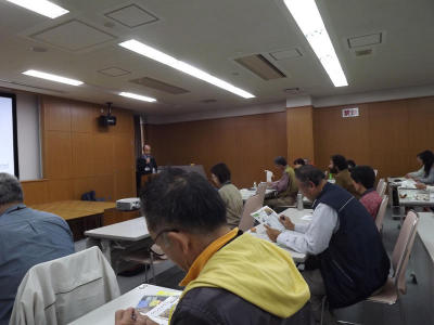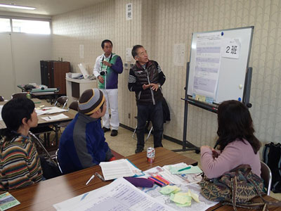 早朝の「ねんねこ祭り」から戻るとすぐ、串本町古座分庁舎へ。前日の荒船海岸<あるもの探し>の続きで、眠い目をこすりながら、ピックアップした資源から具体的ツアープランを作成するワークショップを行う。何というスケジュールだろう! この日は、熊野体験博のプロデューサーをつとめた小野田金司氏(現神戸夙川学院大学観光文化学部長)も参加。立案したプランはパクリ予防のため秘すが、小野田氏からは「ここは観光資源が有り余るところ。ターゲットを選び、いかにうまく相互に結びつけて整理するかがポイント」というアドバイスがあった。 神保圭志氏FBより引用 |