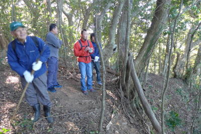 ![]() 総勢27人。佐本の方が、大勢参加してくれました。それに、田辺の小板橋さんの関係者、おなじみの串本古座高校の生徒さん達です。作業も段取りよく進んで、昼までに終了しました。 峠で昼弁当を食べました。峠を挟んで、左右に老杉が二本、昔から人々の往来を見守ってきたんやね。お地蔵さん前で、エッチャンと勤行しました。 報告 狼おじさん |