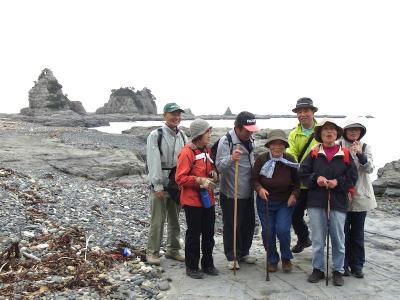 ![]() 南紀アウトドアフェスティバル行事で荒船ウォークを実施。今回は森戸崎の弁天様参拝〜磯歩き〜キャンプランド〜展望台コース。森戸崎をバックの記念撮影は風景が好評。 ただし、ひめひじきさん一押しの名勝、大黒岩は第一印象がウンチみたい、との声多数。 海岸にはイセエビがいっぱい打ち上がっていました。ただし中味のない殻ばかりだったのが残念。 報告 狼おじさん |