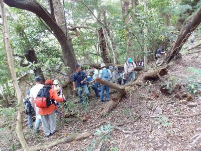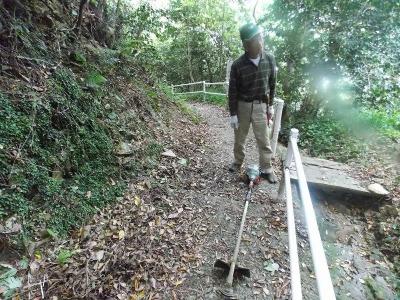 ![]() 宇津木坂の本格整備を行いました。今日は串本古座高校の生徒7名に、古座川町観光協会、田辺、上富田方面や大阪方面からの助っ人も加わり、20人を超える作業部隊に。宇津木側と鳥渕側それぞれから草刈り、倒木除去、崩落箇所拡幅、道標設置などを行いながら、峠の林道で合流。さらに鳥渕側への降り口の整備も行いました。これで宇津木坂整備は完成。今度は法師峠です。報告 狼おじさん |