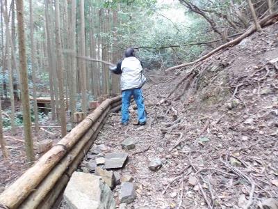 ![]() 古座街道の本格的ツアー開始を前に、オオカミ隊長、萩やん、タケポン、みゆきさんの5人で、古座街道法師峠(すさみ町)の問題箇所の道普請を行いました。丸木橋架け替え、木の階段設置、草刈り、道標追加設置で半日がかりの工事終了。 報告 けいちゃん |