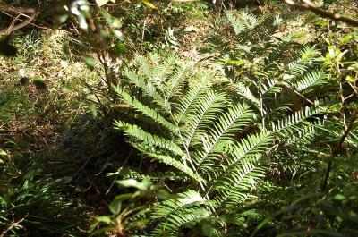 ![]() 橋杭岩・弁天島の照葉樹林のチェックに行ってきました。イーチャン、長い坂仙人も一緒です。 熊自連の滝野先生に指導してもらいました。昔の放牧地にヒロハグミ、森へ入るとクロガネモチ、タブノキ、エノキ、ヒメユズリバその樹木には腕より太いサカキカズラが巻きついていました。 赤い実を付けたフウトウカズラ、岩崖にヒトツバがびっしり、林床には赤い実を付けたヤブコウジが。この森は立て岩から崩れ落ちた巨岩が重なり合って山になっています。弁天島が防波堤になって、津波にも流れなかったのです(中屋先生談)。 それから大島へリュウビンタを見に行ってきました。登り道、本州では大島にしかいないハドノキ、少し登るとハチジョウシダが、その横にりっぱなリュウビンタイがスクスクと成長していました。 報告 狼おじさん |