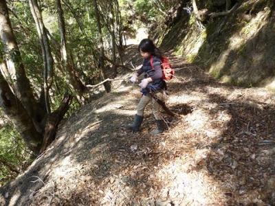 狼おじさんと古座観光協会スタッフとで、古座街道宇津木坂をチェックしてきました。上富田町鳥淵の登り口から宇津木の宝蔵庵までGPS測定では高低差472m、距離約8.5km、所要時間2時間35分でした。途中の鳥淵側の谷が崩落激しく、丸木橋が2本に減っていて使用不可。谷を渡ることはできますが、そのうち補修した方が良いと思います。報告 けいちゃん古座街道ロングトレッキングの下見に、宇津木坂の距離、時間をチェックしに行ってきました。汗だくになった。 明日は、タッツン作業部長と矢五郎坂越えの作業段取りのチェックにいきます。ちかじか、朝来〜鳥淵間の下見にいきます。朝来〜古座街道〜古座・札の辻。古座街道ロングトレッキングをお楽しみに。アウトドアーフェスティバルイベントとしてやります。 報告 狼おじさん |