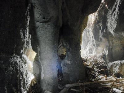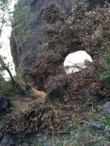 ![]() 大辺路の奇観、串本町指定文化財「東雨の通り穴」が落石と倒木で通路がふさがれ、さらに文化財の標柱も粉々に。さっそくチェンソーで倒木を除去しました。 報告 けいちゃん |