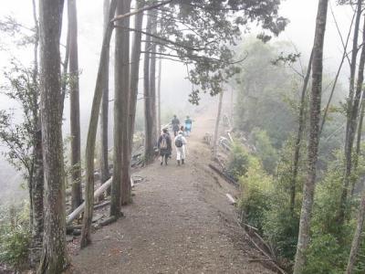 ![]() 巡礼者になって、熊野速玉大社を目指す旅にでました。巡礼メンバーは、狼おじさん、けいちゃん、みのちゃんです。 荷坂峠〜ツヅラト峠〜長島の魚町〜一石峠〜平方峠〜古里(民宿、紀伊松島で宿泊)〜道瀬海岸〜熊ヶ谷道(三浦峠)〜始神峠〜船津駅。二日間で35キロの熊野街道を辿ってきました。 約40名の参加で、ガイドを取り仕切ったのは、わが隊員のノッティーです。彼女は大辺路刈り開き隊のユニフォームを着て、海外の街道を巡っています。長島の街中で、「右 くまの道、左 いせ道」のガイドをしているところ。 始神峠から、遥か水平線上に、志摩半島がかすかに望める。古道の説明ではありません。この道は、大台山系から切り出した黒木を運ぶトロッコ軌道跡です。船津駅が終点で、駅前の自動車学校が貯木場でした。ここから、貨車に積み込んでいたそうです。 報告 狼おじさん |