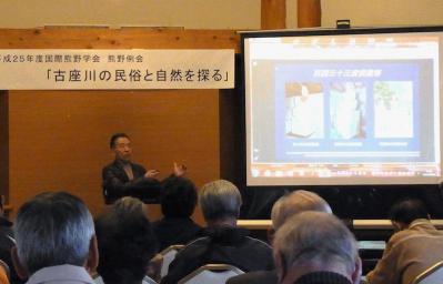 ![]() 国際熊野学会例会が「古座川の民俗と自然」をテーマに古座川町ぼたん荘で開かれ、狼隊長が古座の葬送儀礼について講演、私はフィールドワークを担当し、古座川弧状岩脈、高池日吉神社、善照寺と巡りました。善照寺住職が特別に見せてくれた親鸞上人絵伝の中で、親鸞上人がオオカミを手なずけるシーンでは狼隊長の目の色が変わりました。報告 けいちゃん |