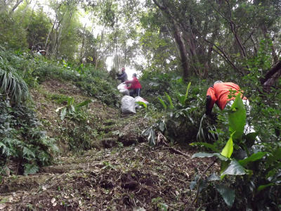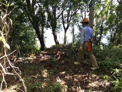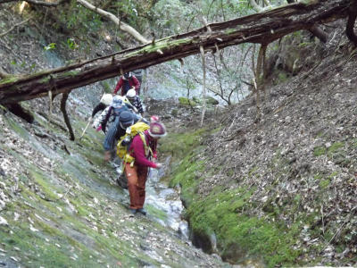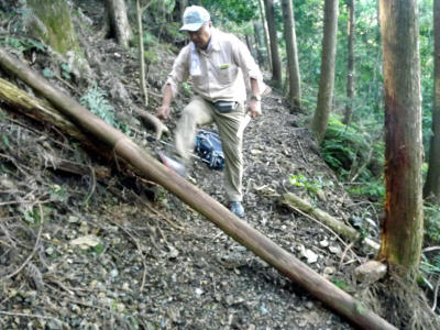 ![]() 二班(宝蔵庵組)に精鋭隊員が集中したので、一班の橋架け作業は難航。 急傾斜の現場での伐採丸太の運び上げに苦労し、第一行程で体力を消耗してしまったので予定の昼食場所に行けず展望所のはるか手前ですました。 沢崩れのガラガラの処の整地。焼き地蔵周辺の古道に生えている小さな灌木を刈り、小板橋さん、樫山さん、堀本さん、壷井さんとで整地。 頂上の宇津木地蔵現場に辿り着いたら、通行できなかった古道はきれいに整備されていた。 二班は整備しながら下山を始めていたので、一班も鳥渕側へと下山。手にもったままのチェンソーが重くこれが疲れた原因だったようだ。 報告 狼おじさん |