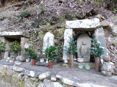 ![]() 古座街道で新しい発見。イーチャンと二手になってガイドしている時、地元の祀りごとに出会いました。 場所は生馬の稗田の薬師堂です。 石仏の前にゴザを敷いて、これからお勤めというときにお邪魔してしまいました。 右のお地蔵さまは位が高く、神様になっているので榊が供えられています。神様になっているお地蔵さんに初めて出会いました。 左の石仏にはシキビとビシャコが普通に供えられていました。 報告 狼おじさん |