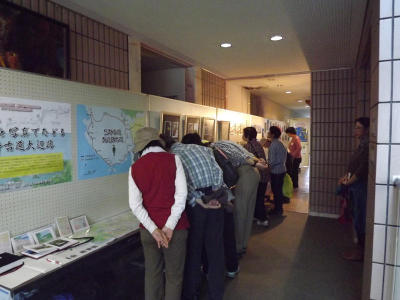 ![]() 串本町教育委員会主催・大辺路刈り開き隊後援で『絵地図と写真でたどる熊野古道大辺路』展が開かれました。 展示のメインはわカミン画伯の長さ10mの絵地図原画。蛙ちゃんの写真パネルにノッティーの東紀州鳥瞰図も出展。賑やかしにその他の隊員が撮影した風景や作業の写真を貼りました。 原画は絶賛されて早期販売を待望する声が多数寄せられました。 報告 ひめひじき |