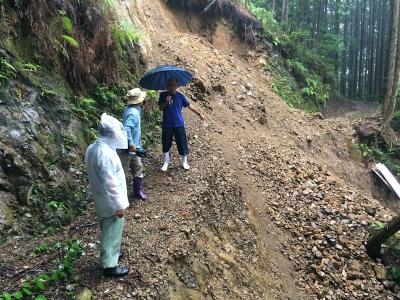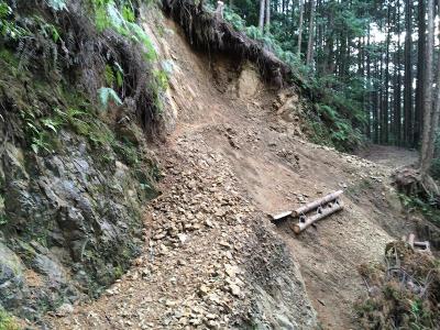 ![]() オオカミ隊長、たっつん、萩やんと、雨の中、古座街道・田鶴横手と法師峠の崩落箇所を検分に行きました。法面掘削で何とかなりそうです。10月に作業予定を立てます。 報告 圭ちゃん |