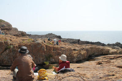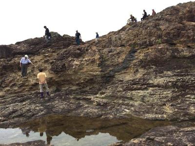 ![]() 須江崎ウォークが催され、38名もの参加があったため二組に分かれ、狼おじさんと二人でメインガイドを務めました。火成岩子さんと他2名のジオガイドもサポート参加してくれました。 臨済宗東福寺派の南丁寺の巨木を訪ね、地獄の釜へ。須江崎の広〜い見晴らしの良い火成岩の磯で昼食を食べ、その後はみんなで瑪瑙さがし。沢山見つかりみなさん夢中になってとりまくっていました。(写真ですよ!!) 報告 ひめひじき |