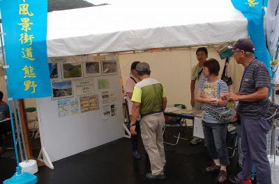 ![]() ツッチー夫婦、イーちゃん、山ちゃん、ワカミン、コワカミンのメンバーで風景街道熊野ブースに陣取り、「橋杭岩でいっぱい遊ぶ絵地図」を配布しジオサイト・橋杭岩に来てくらんしと宣伝してきました。 式典が始った頃から、ものすごいドシャブリで忘れられない開通イベントになりました。気が付いたら、膝から下がビシャビシャになっていた。 報告 狼おじさん |