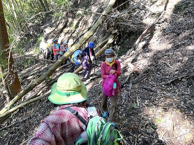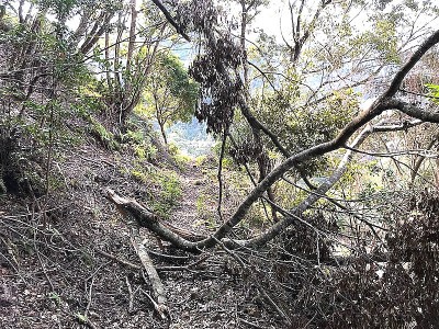 ![]() 山陽バス古座街道踏破ツアーの田鶴横手道をガイドしましたが、たびたび修復していた地点の土嚢や補強材が崩落していました、山側に沿って通る事はできます。 途中に倒木があり、枝を切ってようやくすり抜けられましたが、チェンソーで伐採要です。 報告 けいちゃん |