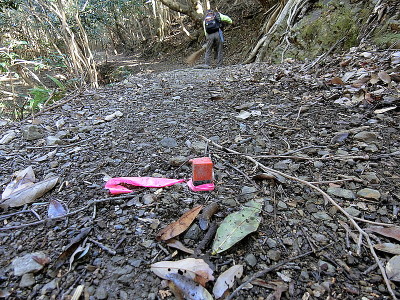 ![]() 昨日、オオカミおじさんと串本町内4箇所の世界遺産登録大辺路の定期パトロールに行ってきました。 清水峠道入口の一部流出した用水路の石畳はきれいに宇津木石を使って補修されていました。 新田平見道は地籍調査と思われる杭とリボンがあちこちに付けられていましたが、古道のど真ん中にも杭の頭がでているところがあり、落ち葉に埋もれて気づかないと、けつまずく恐れがあります。世界遺産でもあり、もうちょっと古道に敬意をはらって欲しいものです。報告 けいちゃん |
